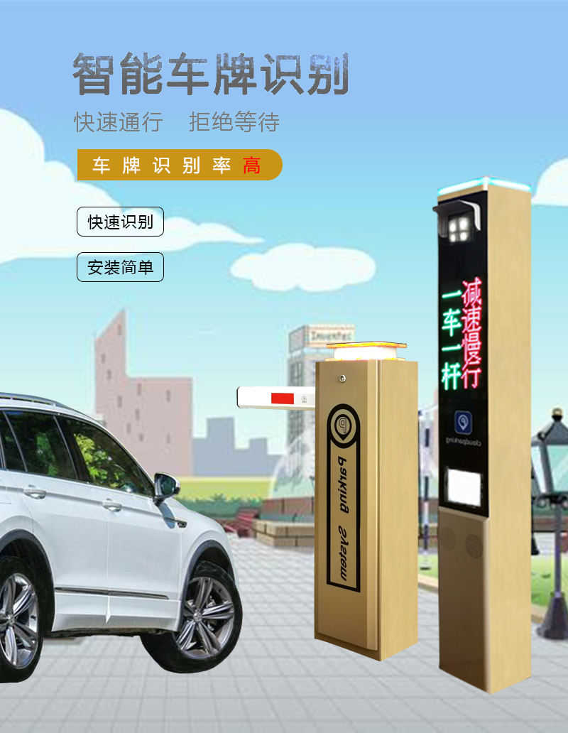 产品为车牌识别一体机,相机、显示屏和补光灯等都安装于机箱内,更好的保护好相关配件,让使用寿命更长久;识别率99.7%以上,3~5m的识别范围,适应识别车速5~80km/h